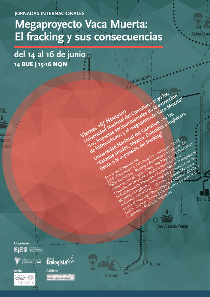 Las Jornadas internacionales megaproyecto Vaca Muerta: fracking y sus consecuencias buscan poner en común experiencias de colectivos que, desde distintos tipos de intervenciones y geografías, cuestionan el avance de la frontera extractiva hidrocarburífera no convencional. Un encuentro de organizaciones vecinales, sindicales, de pueblos originarios, socioambientales, partidos políticos y analistas.
