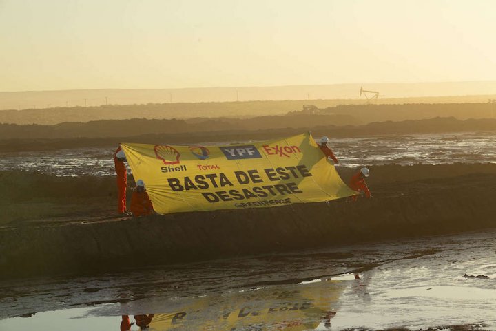 C’est une vaste tache noire qui souille la steppe de la Patagonie. À Añelo, dans la province de Neuquén, sur plus de 13 hectares, des résidus de l’extraction d’hydrocarbures sont déversés à même la terre creusée et au mépris de toutes les normes environnementales. Mardi 26 février, pour exiger la fermeture de cette plateforme de traitement des déchets de la fracturation hydraulique [1], une quarantaine de militants de Greenpeace ont entrepris de bloquer son accès. Ils y ont déployé des banderoles et empêché d’entrer les camions provenant des concessions voisines, notamment celles opérées par Total et Shell. «L’industrie pétrolière opère ici sans aucun contrôle, dit Leonel Mingo, coordinateur de cette campagne de Greenpeace en Argentine. Nous exigeons que soit fermé ce site et que ces entreprises cessent de polluer l’écosystème de la Patagonie avec les résidus de l’extraction.»