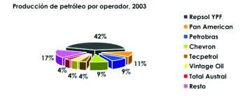 3.En 2011 un 67.% de la extracción de petróleo la realizaron 4 empresas -YPF, Pan American Energy (PAE), Chevron y Petrobras-, y 4 empresas -Total Austral, YPF, PAE y Petrobras- extranjeron un 75.% del gas. En combustibles líquidos y otros refinados los principales productores son YPF; Exxon y Shell.