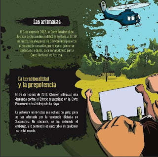 En otras líneas, agrega: “Chevron ha negado los efectos contaminantes causados por sus operaciones irresponsables, y se dedicó a desprestigiar al sistema judicial ecuatoriano para restar legitimidad a los procesos legales tramitadas en el país”. Evidentemente la corporación consiguió convencer a algunos actores, como demuestra el cable de Telam mencionado arriba, que fuera también reproducido por Página/12, como muestra del nuevo “periodismo house-organ” que difunde el discurso propagandístico de las corporaciones trasnacionales.