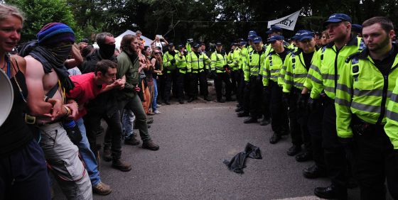 Manifestantes ‘antifracking’ se encaran con la policía en Balcombe (Inglaterra) el pasado lunes. /CARL COURT (AFP)