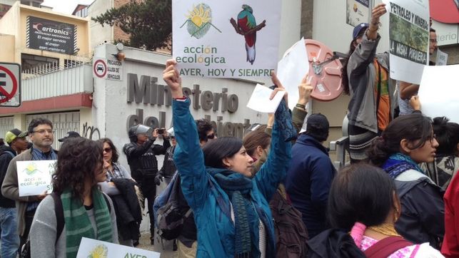 Protestas por el cierre de ACCIÓN ECOLÓGICA en el Ministerio de Medio Ambiente de Ecuador.