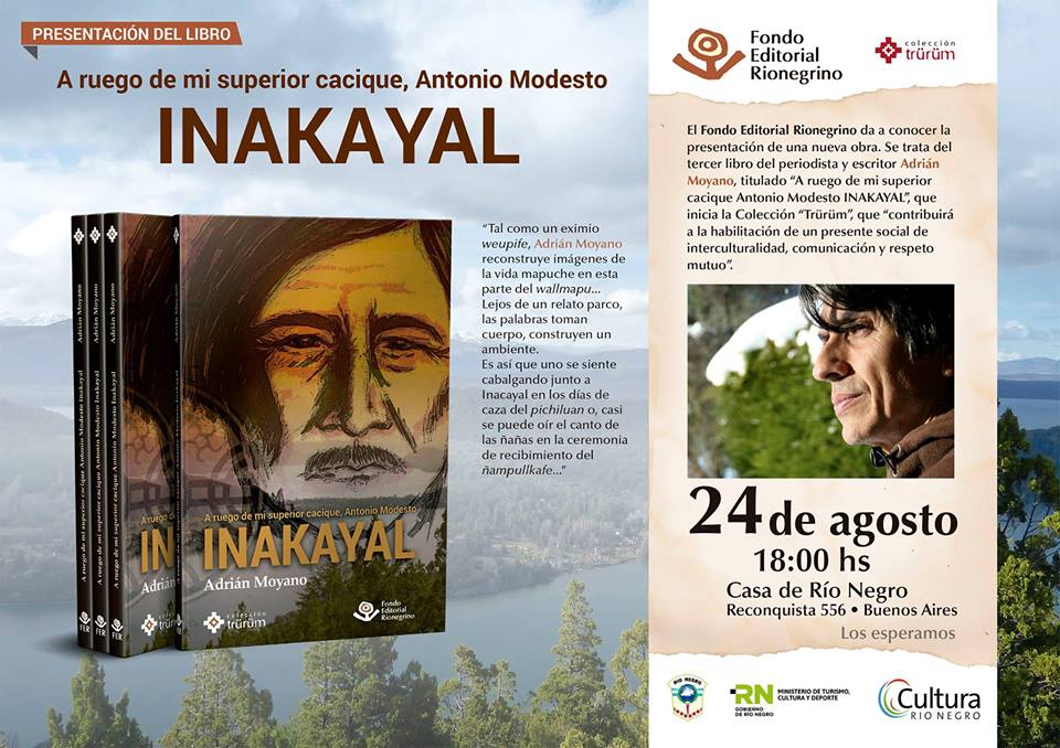 La presentación en Buenos Aires de “INAKAYAL” tendrá lugar el jueves 24 de agosto desde las 18 en la Sede Administrativa de Río Negro, Reconquista 556 – Ciudad Autónoma de Buenos Aires.