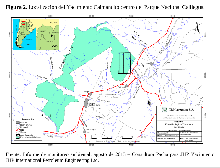 Por OPSur. La Auditoría General de la Nación (AGN) publicó un crítico informe sobre la gestión ambiental del Yacimiento Caimancito, ubicado en jurisdicción del Parque Nacional Calilegua, en Jujuy. “Resulta necesario que la Administración de Parques Nacionales aumente los esfuerzos dedicados a las acciones vinculadas al cierre definitivo del yacimiento y a la remediación ambiental del área protegida y su zona de influencia”, demanda el organismo. El informe fechado en mayo de este año subraya, entre sus conclusiones, que la actividad petrolera dentro de un parque nacional está expresamente prohibida. Señala la violación flagrante de las leyes 22.351 de Parques Nacionales, 17.319 de Hidrocarburos, 26.331 de Presupuestos Mínimos de Protección Ambiental de Bosques Nativos y 25.675 General del Ambiente.