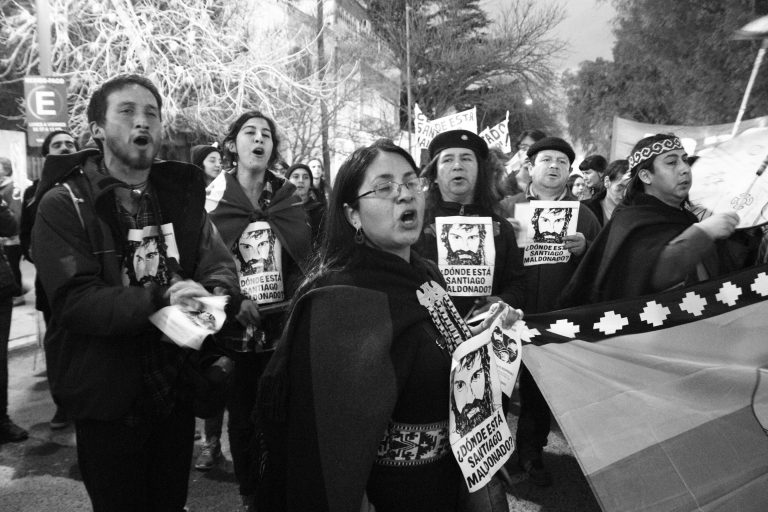 - Marcha en Fiske Menuco por la aparición de Santiago Maldonado. Foto: Ana Cea.