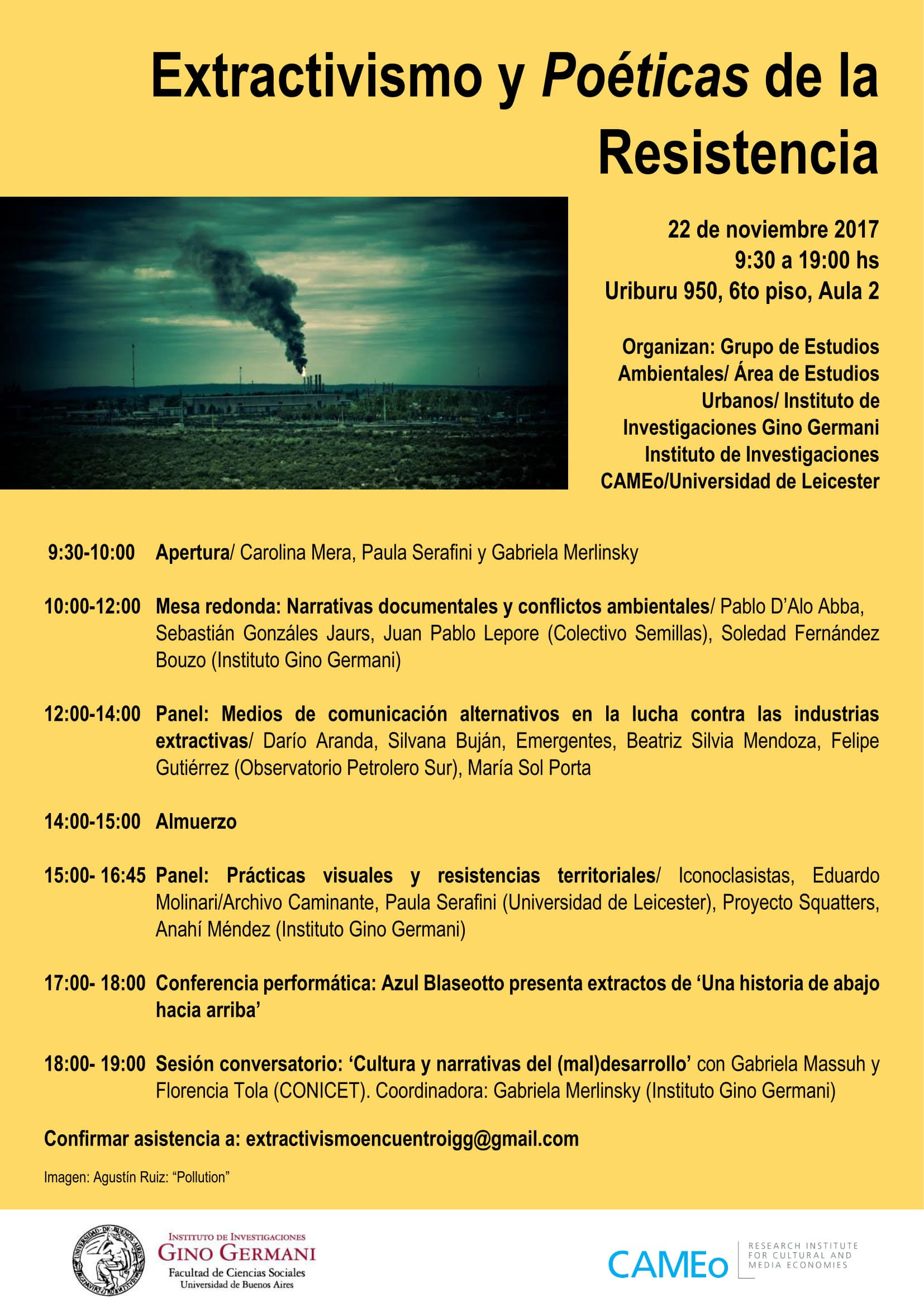 Agenda 22/11 | BsAs: “Extractivismo y Poéticas de la Resistencia” Navegación de entradas arrow-leftPrevioPrevio#FueraOMC: Los múltiples impactos en la vida de las trabajadorasarrow-rightSiguienteSiguiente30/11 | BsAs: “La producción de la masculinidad en el trabajo petrolero”
