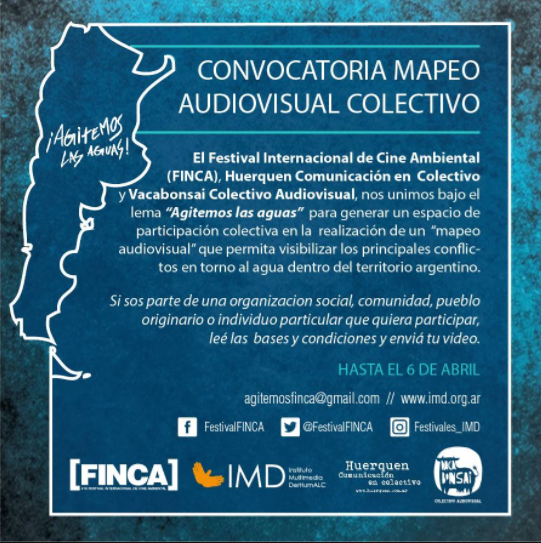 El Festival Internacional de Cine Ambiental (FINCA),Huerquen, comunicación en colectivo y VacaBonsai Colectivo Audiovisual, nos unimos bajo el lema “Agitemos las aguas”, para generar un espacio de participación #colectiva con la realización de un “mapeo audiovisual” que permita visibilizar los principales conflictos en torno al #agua dentro del territorio argentino.