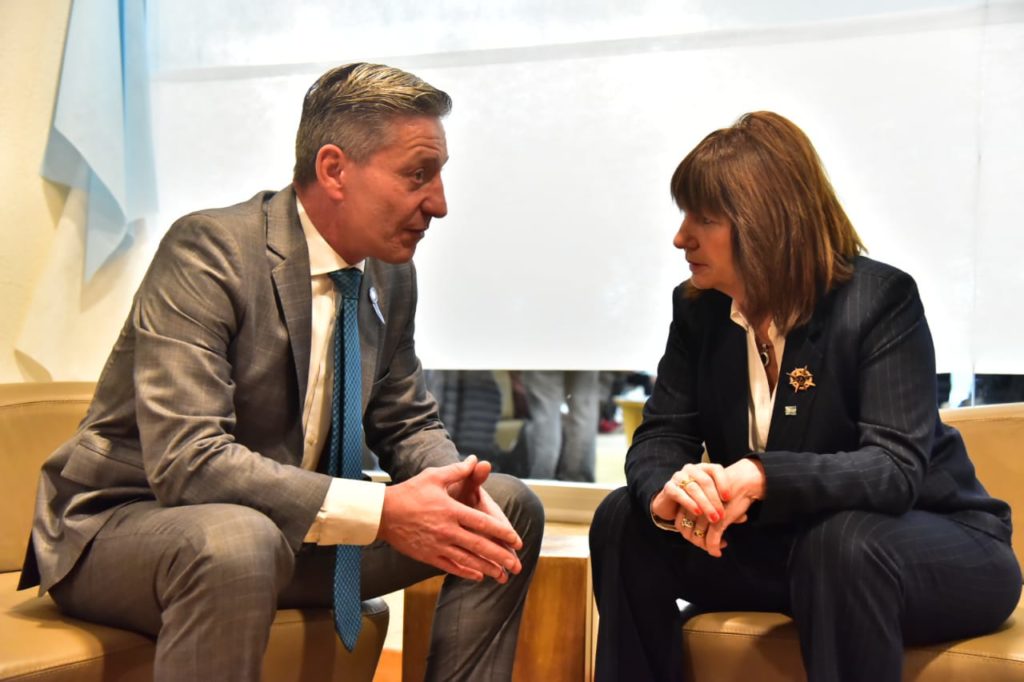 La funcionaria nacional, tras firmar los acuerdos con el gobernador Mariano Arcioni, reveló desde el comodorense Club Huergo que llegarán a la ciudad petrolera “muchos agentes de Gendarmería y Prefectura”, especulándose que serían 400 los efectivos que se reubicarían en Comodoro Rivadavia.