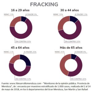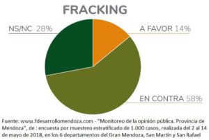 Todos estos datos, finalizan en números contundentes sobre la opinión pública mendocina. El 58% de la muestra está en contra del fracking, el 28% que no sabe/no contesta y sólo un 14% declara estar a favor.