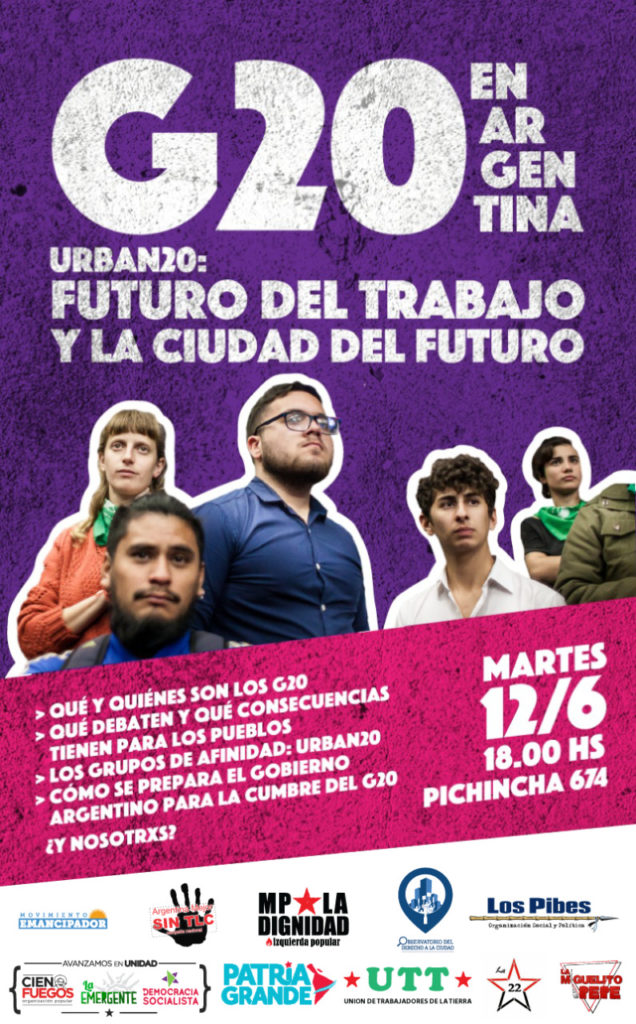 Lxs invitamos a nuestro próximo taller formativo el martes 12/6 a las 18.00 en Pichincha 674 sobre “G20 en Argentina: Futuro del Trabajo y Urban 20: La Ciudad del Futuro”