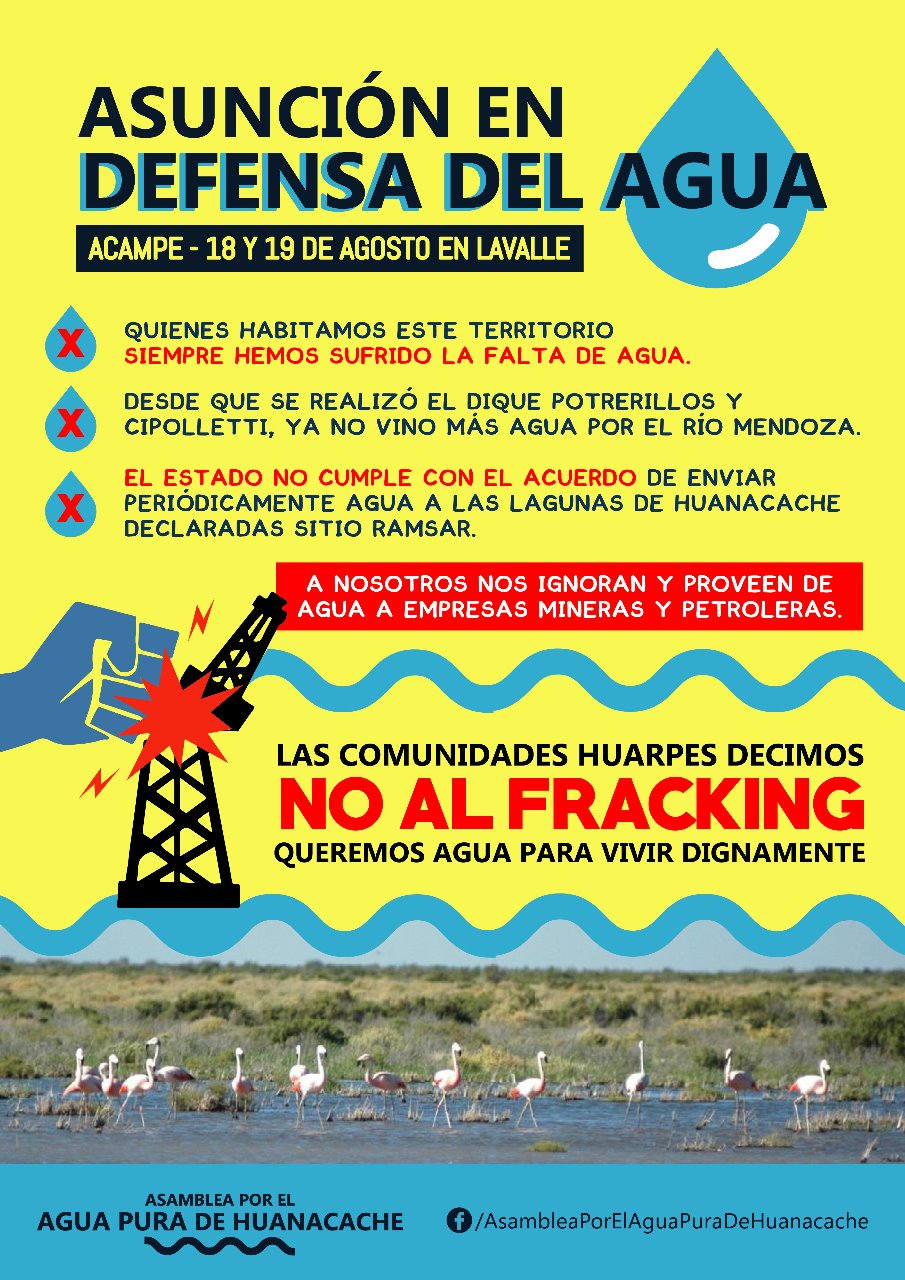 Acampe informativo en la fiesta patronal de Asuncion, con la colaboración de la comunidades huarpes de la zona. Aquí el mensaje de ellos!!! Se darán charlas, se repartirán volantes, se juntara firmas, habrá proyecciones y mucho mucho espíritu de defensa por todo el saqueo histórico para con nuestro departamento y la provincia. Desde Lavalle nos unimos al grito de MENDOZA LIBRE DE FRACKING, EL AGUA DE MENDOZA NO SE NEGOCIA!!!