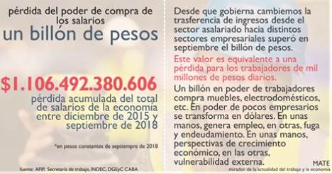 Desde que gobierna Macri, los asalariados perdieron mil millones de pesos por día