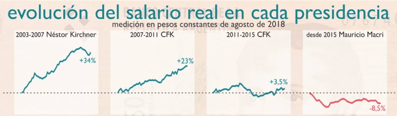 El poder de compra de los salarios del sector privado se redujo un 15% desde diciembre de 2015 hasta septiembre de 2018. En el caso del sector público, la reducción del poder de compra supera el 20%.