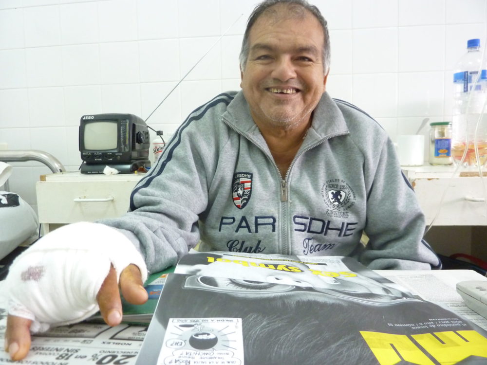 Pepino Fernádez, fundador del proyecto de la UTD, durante una de sus internaciones: perdió el dedo mayor de la mano derecha por la diabetes, y en febrero perdió la visión de un ojo. “Pero seguimos peleando. Los funcionarios pasan: nosotros quedamos”.