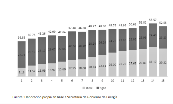 El crecimiento de la producción de gas de 2018 se debió a la explotación no convencional, más precisamente al extraído de Vaca Muerta (shale gas), que evidenció un salto productivo de significativo tenor. Este comportamiento está explicado por los subsidios transferidos a las petroleras para estimular la inversión en la formación. Más precisamente a la empresa de Paolo Rocca, Tecpetrol, cuya decisión de explotar el área Fortín de Piedra se debe a la presencia de estos subsidios. Hoy en día la dinámica productiva del shale gas depende en gran medida del nivel de actividad en el área de Tecpetrol, como lo indica el último dato disponible: en marzo el 52% del gas de Vaca Muerta se obtuvo de ese área.