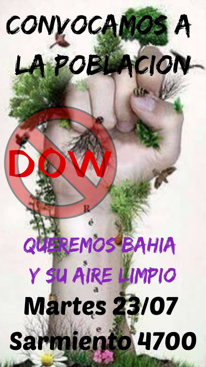 Convocamos a la población de Bahía Blanca y de Ingeniero White el martes 23 a las 18 hs. frente al Dow Center en Sarmiento 4700
