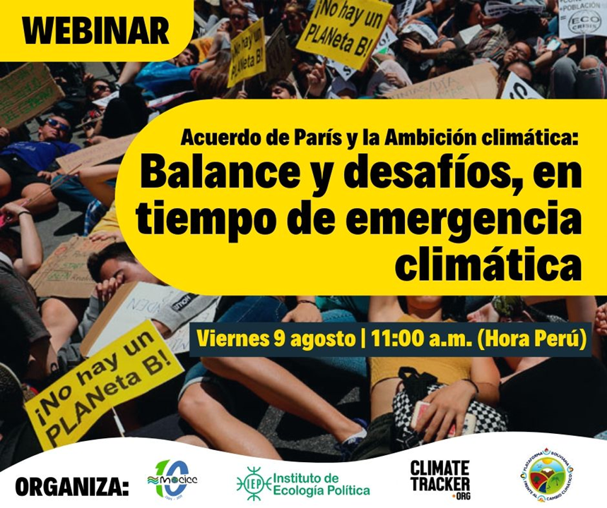 Este webinar busca reflexionar y analizar el contexto en donde estamos, revisar los obstáculos que existen para que los países puedan cumplir los compromisos climáticos y que esto genere propuestas y demandas desde la ciudadanía para la acción climática a vísperas de la próxima huelga global por el clima, que será el 20 de septiembre y que busca más acción y menos palabras.