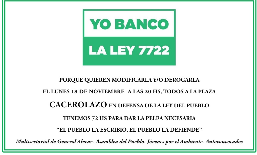 La Multisectorial Y la Asamblea del Pueblo de General Alvear PROCLAMAN la DEFENSA y el más absoluto apoyo a la VIGENCIA E INTEGRIDAD de la Ley 7722.