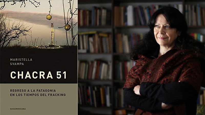 En “Chacra 51” muestra su perfil más literario, aunque sin abandonar el rigor metodológico para analizar a través de su historia personal y la de su familia de chacareros el impacto y los conflictos entre una explotación frutícola y una empresa petrolera que extrae gas con la modalidad de fractura hidráulica en Allen. Con el hilo familiar de fondo (la historia se inicia cuando ella se entera que un primo alquila la chacra de su abuelo a la multinacional) Svampa va desmenuzando una problemática que considera a la vez regional, local y global sobre la aplicación de “modelos insustentables de desarrollo”, la crisis de la fruticultura y su convivencia con el fracking, que termina afectando a toda la comunidad.
