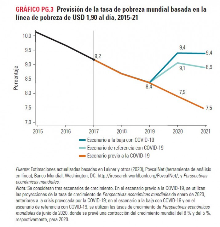Esa tasa representaría una regresión a la registrada en 2017, que fue del 9,2%. Si la pandemia no hubiera convulsionado el mundo, se proyectaba que la tasa de pobreza habría descendido al 7,9% en2020.