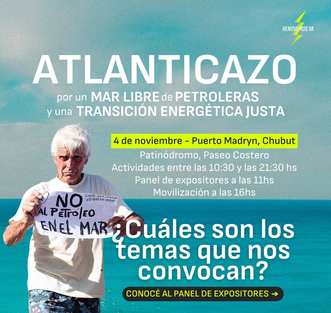 Desde OPSur, acompañaremos las convocatorias en Puerto Madryn para esta nueva jornada de lucha y nos sumamos a un conversatorio a las 11hs en el Patinódromo de la ciudad para seguir pensando estrategias de intervención por un Mar Libre de Petroleras y una Transición Energética Justa.
