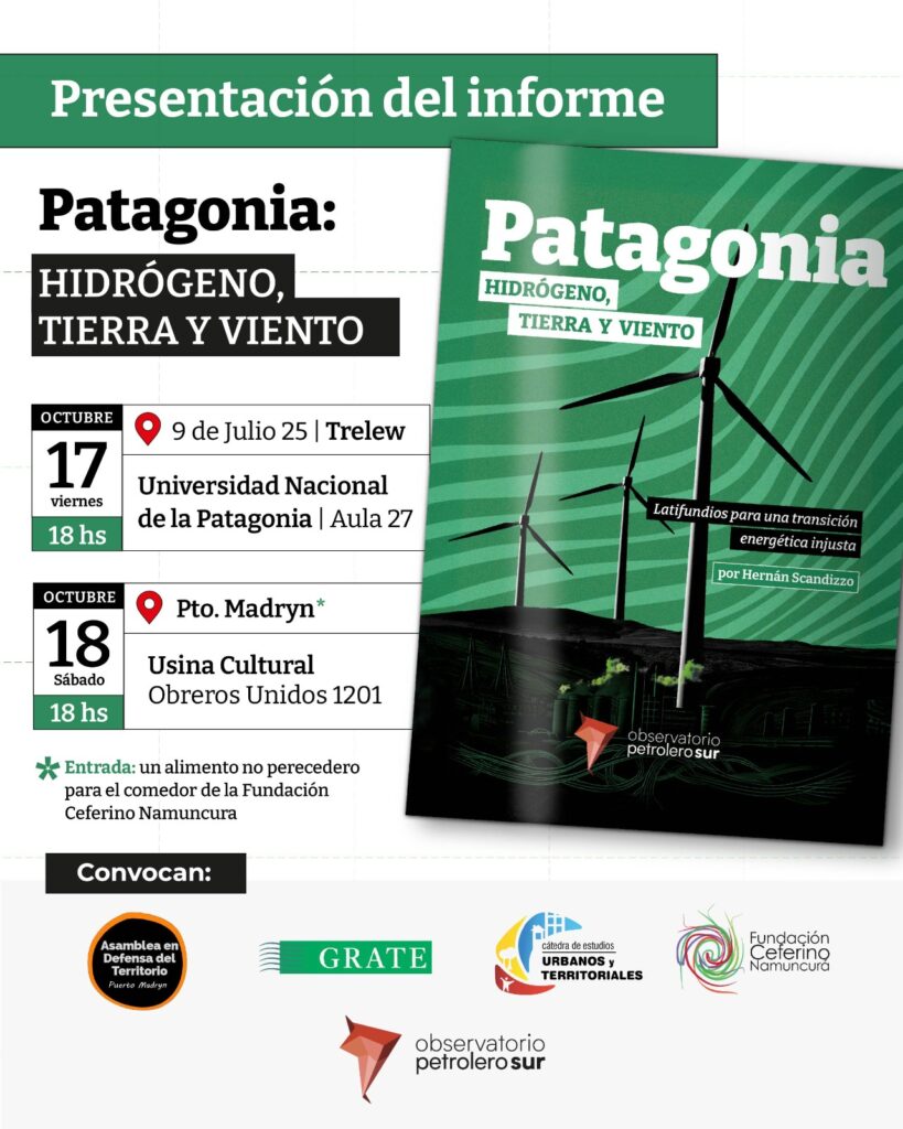 Lo explicó Hernán Scandizzo, autor del informe Patagonia: hidrógeno, tierra y viento, en diálogo con Pablo Lada y José Luis Pope en el programa Grito de la Tierra, que se emite los sábado en Radio Sudaca de Trelew. El trabajo se presentará en dos jornadas en Trelew y Puerto Madryn el 17 y 18 de octubre.