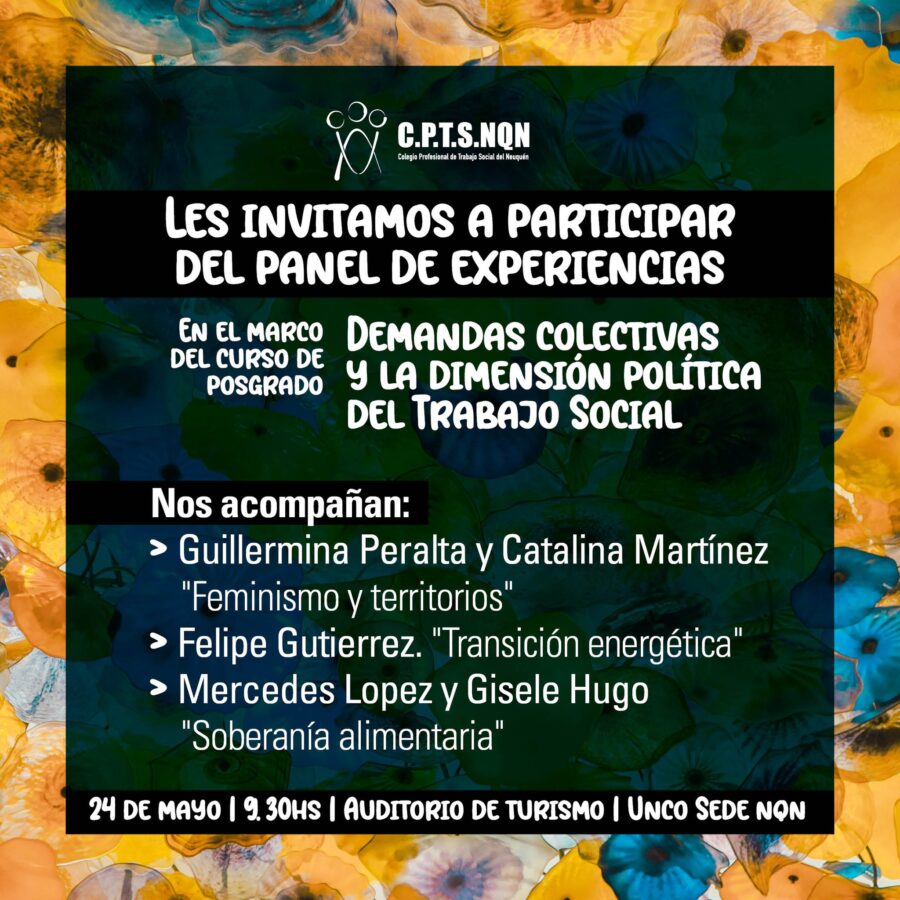 Una actividad que convoca un panel para compartir experiencias en diferentes procesos políticos La convocatoria es el 24 de mayo a las 9.30hs en el auditorio de turismo de la Universidad Nacional del Comahue.