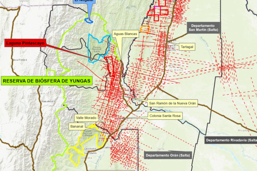 Las picadas que trazó YPF para enterrarlos cada 25 o 50 metros cubren un tercio de la Reserva de Biósfera de Yungas. Atraviesan la planta urbana y rural desde Yuto, en Jujuy, hasta Salvador Mazza, en la frontera entre Salta…