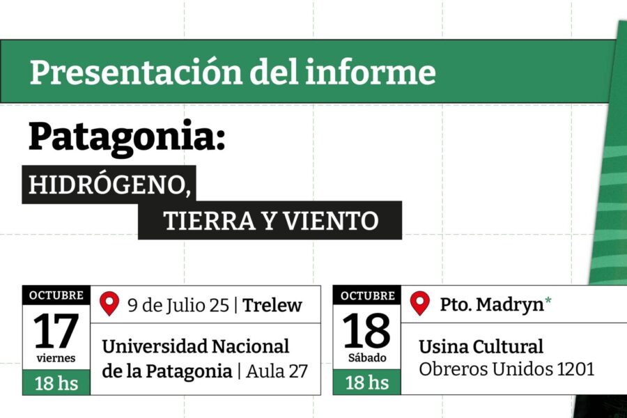 Dos encuentros este 17 y 18 de octubre en Trelew y Puerto Madryn para intercambiar sobre el nuevo informe de OPSur “Patagonia: hidrógeno, tierra…