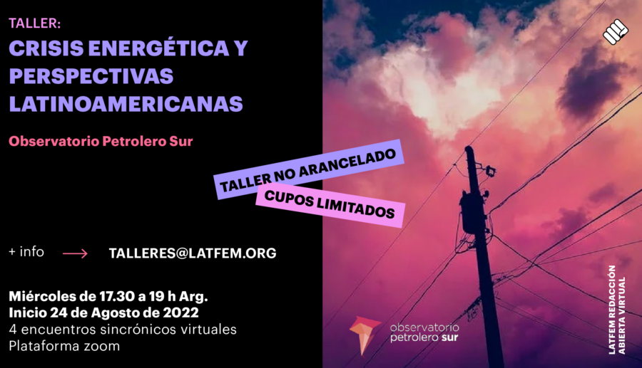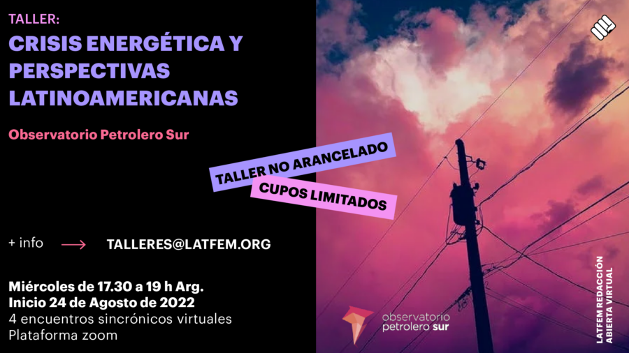 Esta propuesta de formación gratuita es una articulación de Latfem con OPSur destinada a activistas, militantes, feministas, periodistas y comunicadores a quienes les interese incorporar nociones básicas sobre la situación de crisis y transición energética en nuestra región. Algunos de los ejes del espacio…